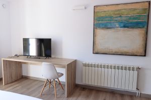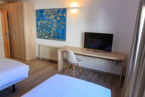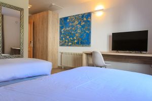 Disposem de 32 habitacions i 4 suites exclusives, totes equipades amb TV, Wi-Fi i banys dissenyats per al teu descans. Podràs gaudir de detalls de qualitat com els nostres seients de dutxa fets amb pols de marbre, pensats per a una experiència relaxant.